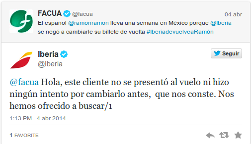 Desde entonces, intenté reclamar mis derechos, y aunque ya había presentado una reclamación previa solicitando el cambio de pasaje, que no había tenido ningún éxito, volví a intentarlo, con la misma respuesta. Si es cierto que desde los canales de comunicación de Iberia en twitter y facebook me respondían, pero siempre igual, no es posible cambiar mi pasaje, y como no “me había presentado” no tenía otra opción que comprar otro pasaje (en ese sentido sí que me ofrecían ayuda para encontrar una tarifa económica).