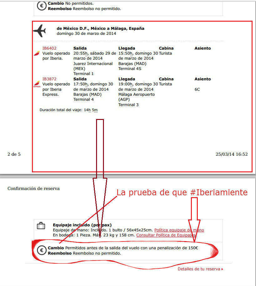 LAMENTABLE, muy lamentable, porque yo no solo había enviado copia de mi reserva a todo el que pude, sino que además, mostré igualmente todos mis intentos de cambio de pasajes. Por lo que quedaba más rotundo que #IberiaMiente