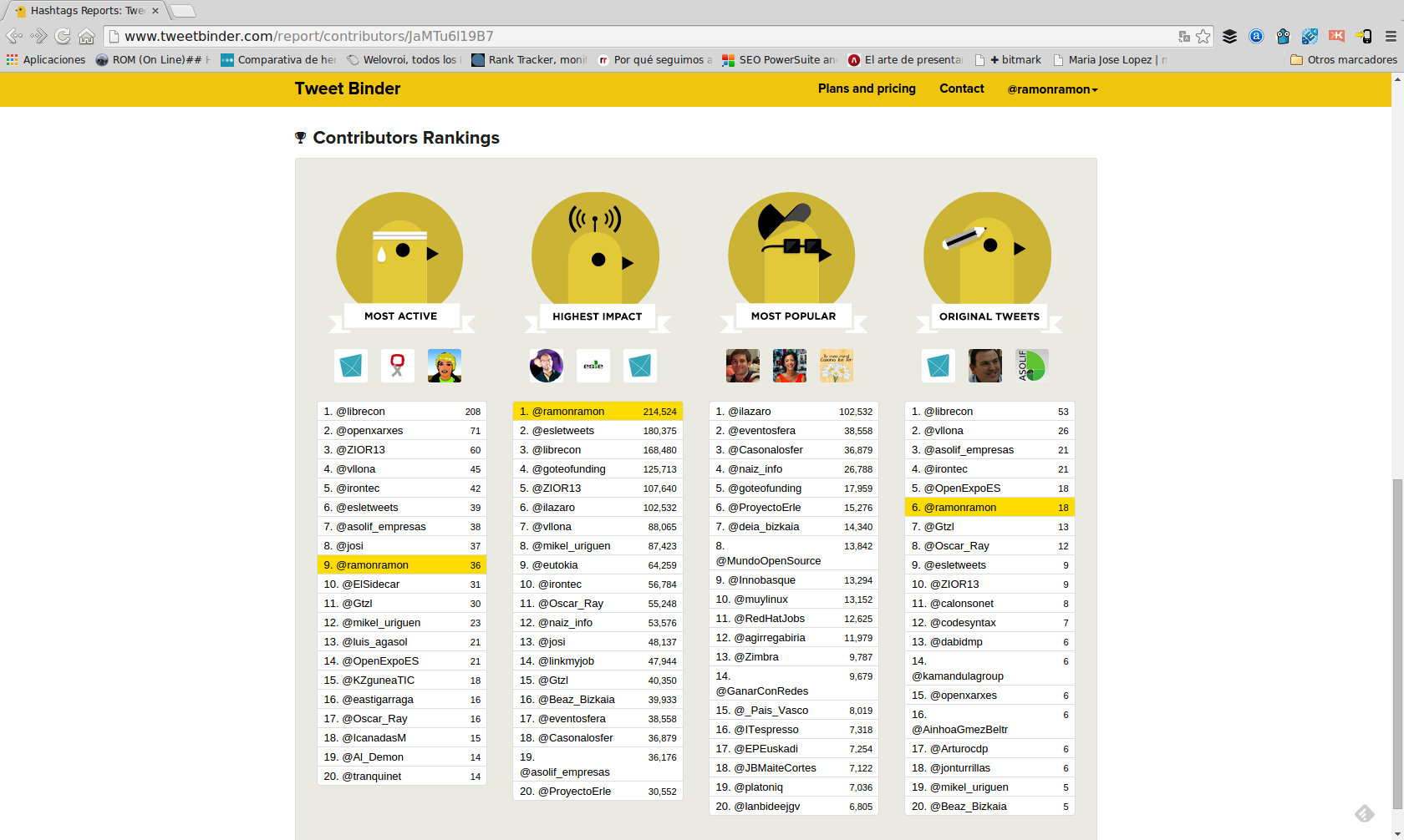 Lo que me he sorprendido hoy es al usar la herramienta TweetBinder para medir el impacto del evento: