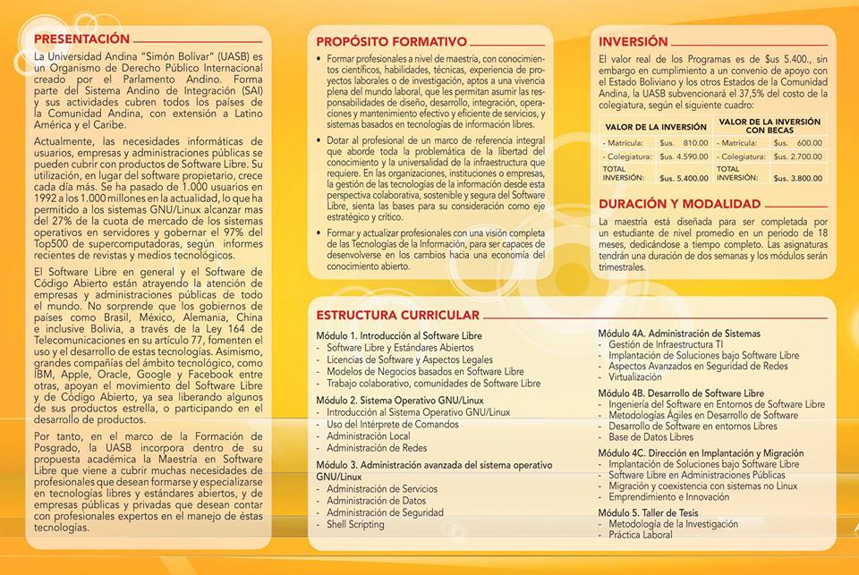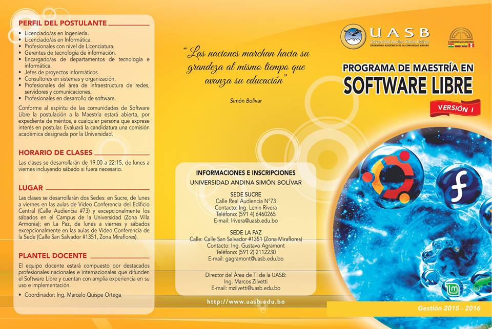 Una nueva oportunidad para la formación en tecnologías libres en una Maestría de Software Libre organizada por la Universidad Andina en Sucre y La Paz – Bolivia.