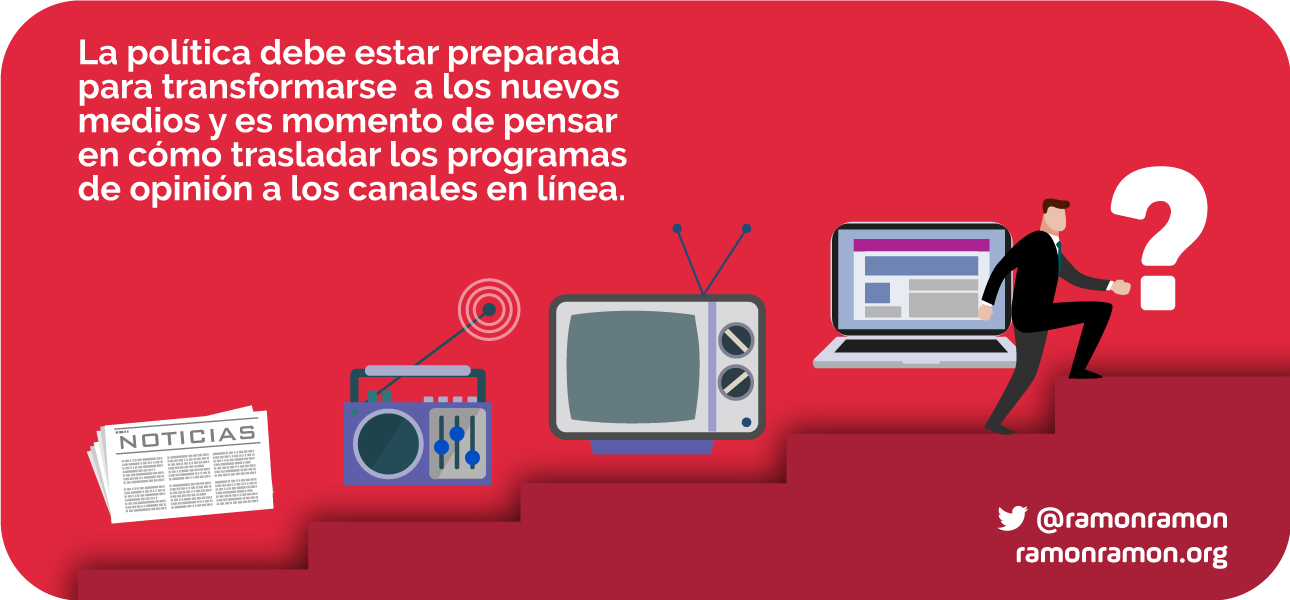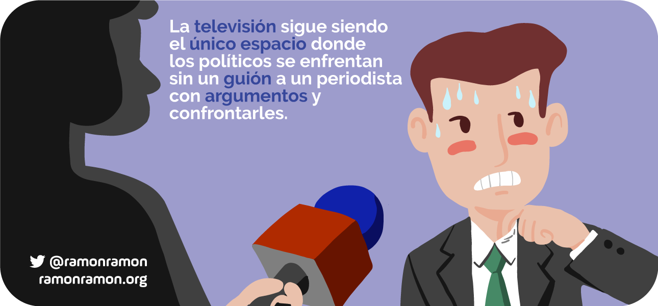Y así mismo siguen siendo herramientas para comunicar y motivar la actividad política, ya que, a pesar de que en Internet se ha hecho común la difusión de contenido político a través de micros, campañas virales y publicaciones de redes sociales, la televisión sigue siendo el único espacio donde los políticos se enfrentan (sin la posibilidad de fabricar un previo guión, ni de consultar a sus asesores) a un periodista que tiene argumentos profesionales para confrontarles y a un público que está atento a cualquier desliz o manifestación de ignorancia para descartarlos del mapa electoral.