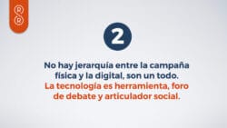 Las campañas exitosas enfocan la acción política de manera simbiótica entre ambos planos, el digital y el físico. Las herramientas digitales nos permiten, más en momentos de limitaciones físicas de movimiento o contacto personal, entablar una conversación con la ciudadanía, a la vez que es el espacio donde recabamos la mayor información sobre el electorado. La tecnología es herramienta, foro de debate y articulador social.