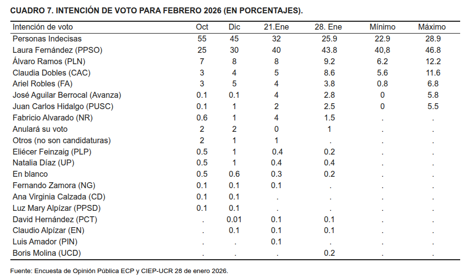 - Las últimas encuestas pre-electorales (CIEP-UCR) le daban solo 8-9% de intención de voto