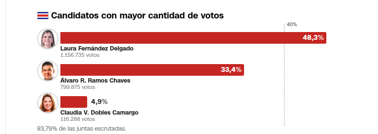 Álvaro Ramos y el Partido Liberación Nacional (PLN) obtuvieron un 33.4% de los votos en las elecciones presidenciales, consolidándose como la segunda fuerza política del país.